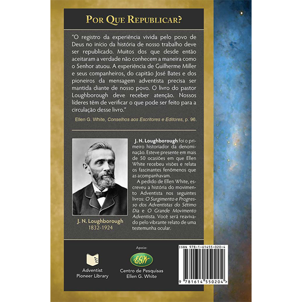 “O registro da experiência vivida pelo povo de Deus no início da história de nosso trabalho deve ser republicado. Muitos dos que desde então aceitaram a verdade não conhecem a maneira como o Senhor atuou. A experiência de Guilherme Miller e seus companheiros, do capitão José Bates e dos pioneiros da mensagem adventista precisa ser mantida diante de nosso povo. O livro do pastor Loughborough deve receber atenção. Nossos líderes têm de verificar o que pode ser feito para a circulação desse livro.”